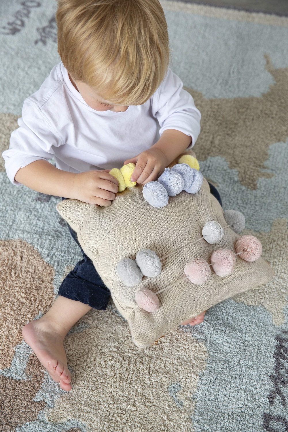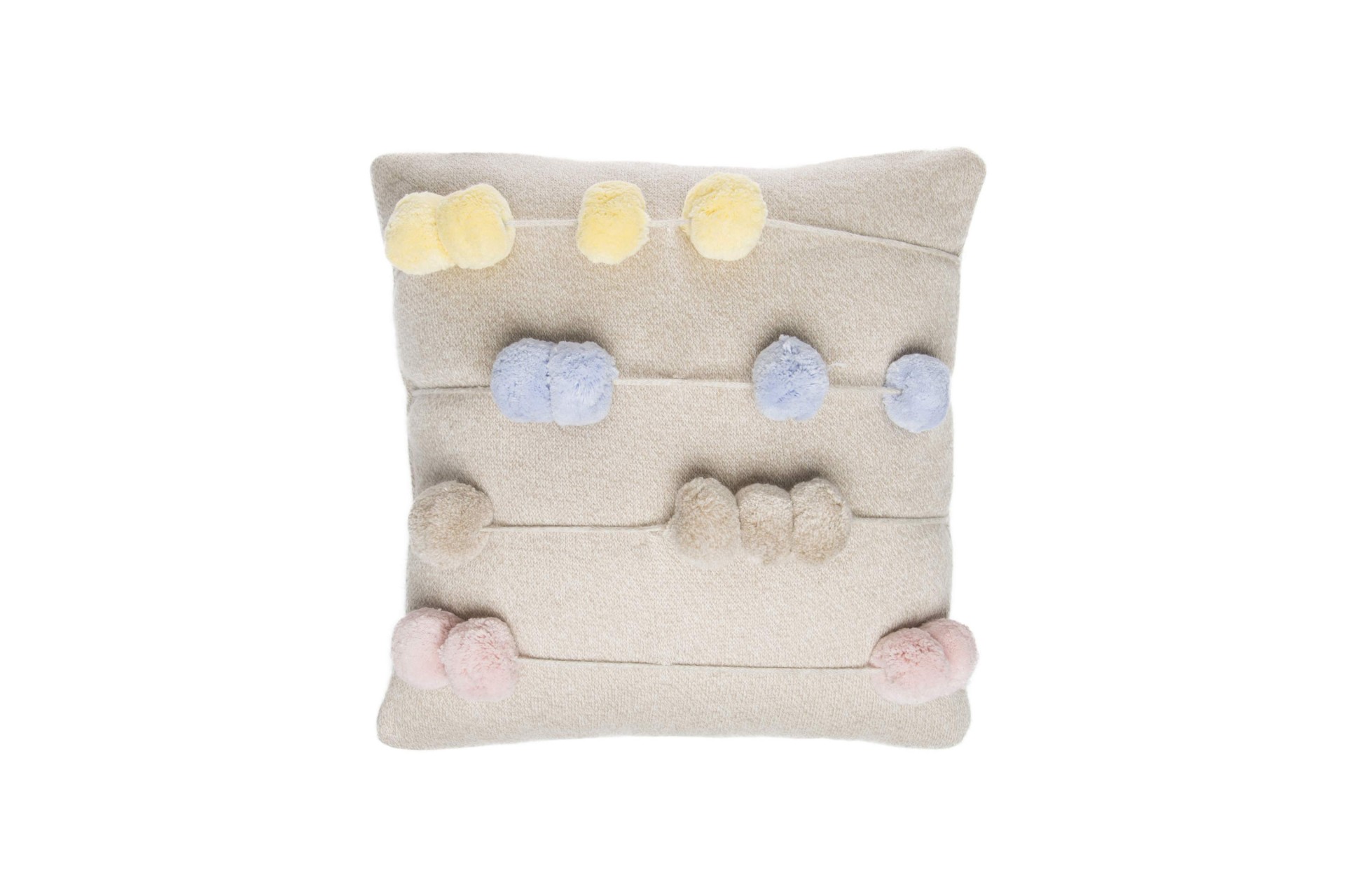 Amorosa almofada para decorar o quarto das crianças! Esta almofada é um elemento decorativo original e divertido para os mais pequenos, que podem brincar e aprender a contar com ela graças às suas bolas móveis em tons pastel.