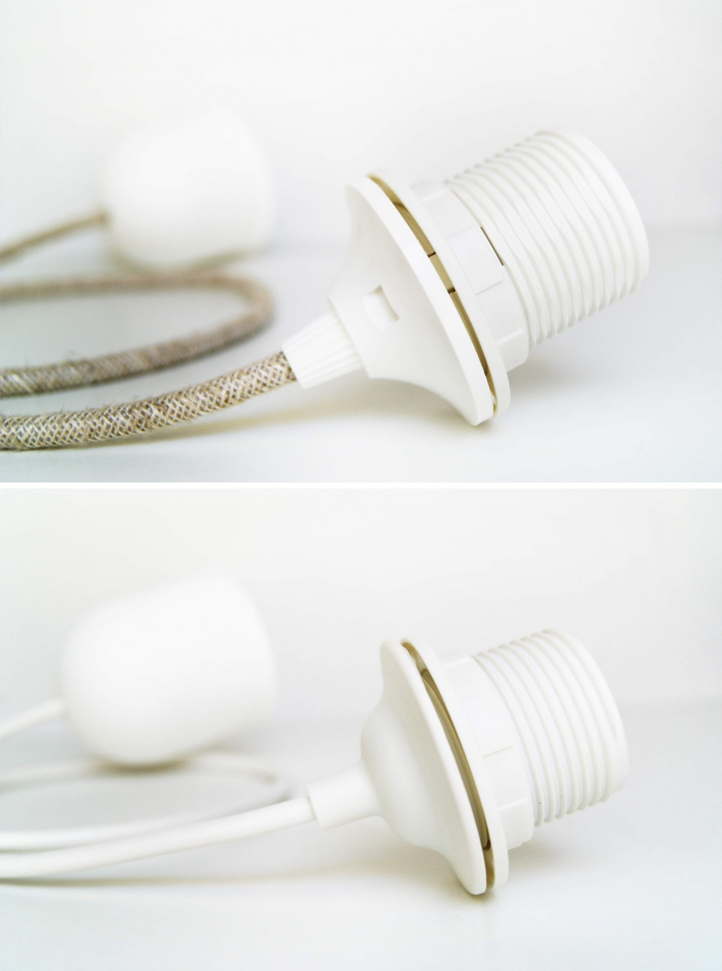 Conjunto elétrico vendido à parte (veja em Iluminação > Acessórios para iluminação): cabo simples branco ou cabo têxtil cor de areia, ambos com 1 metro de comprimento.