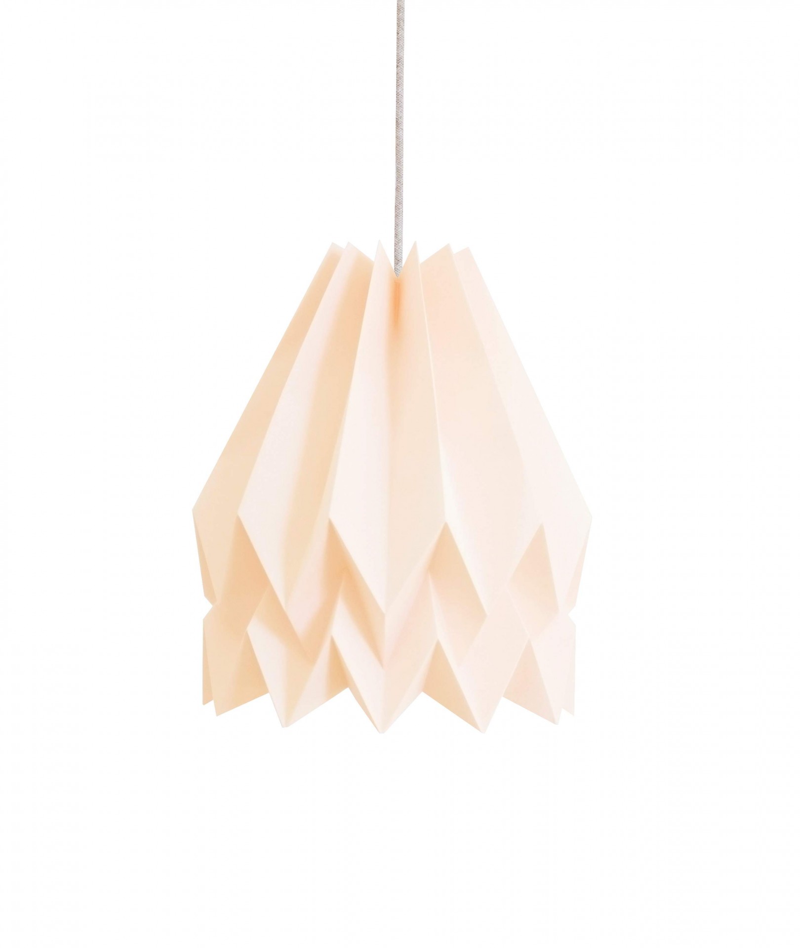 Candeeiro de teto liso rosa feito à mão em origami, com papel de alta qualidade. Também disponível em azul e em branco com barra amarela.