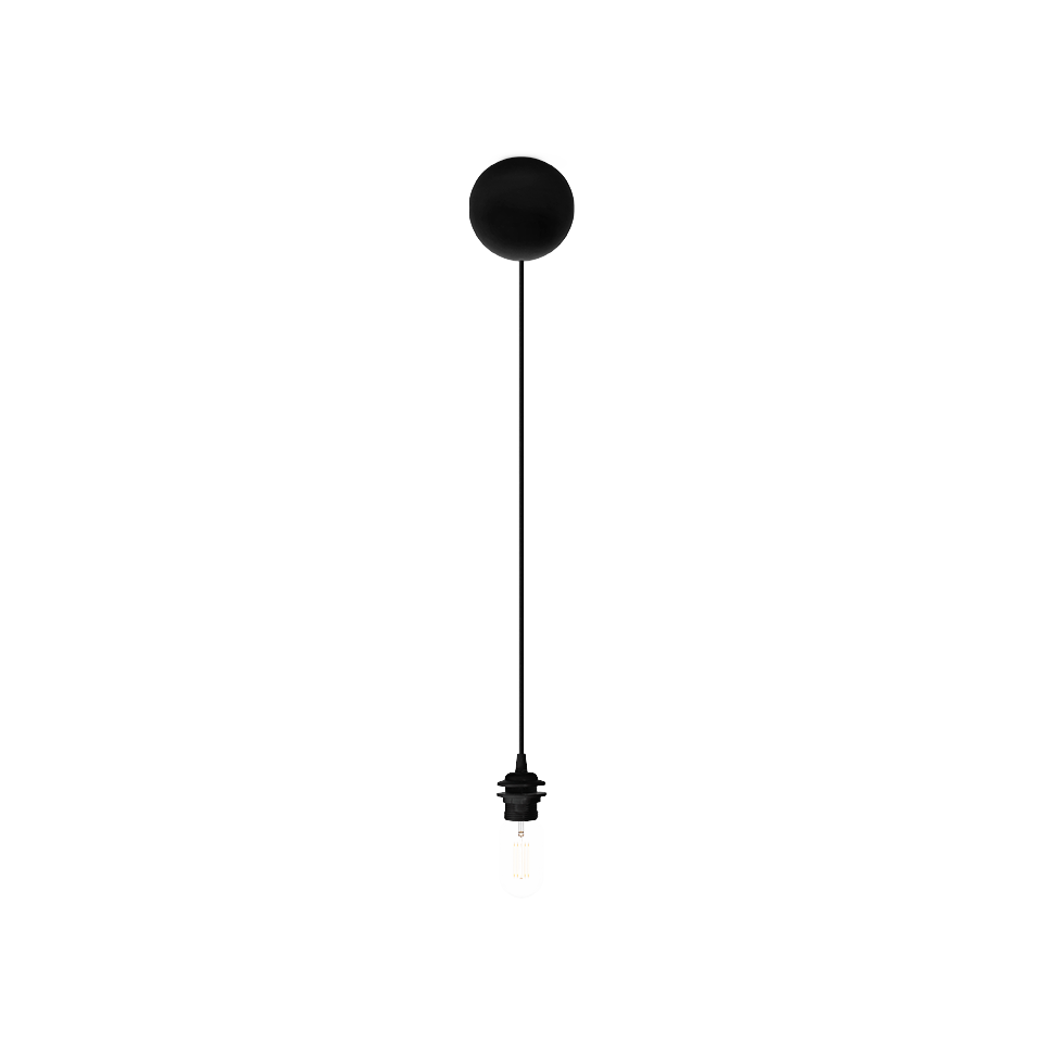 • Candeeiro de teto pendente preto com lâmpada visível em invólucro de vidro