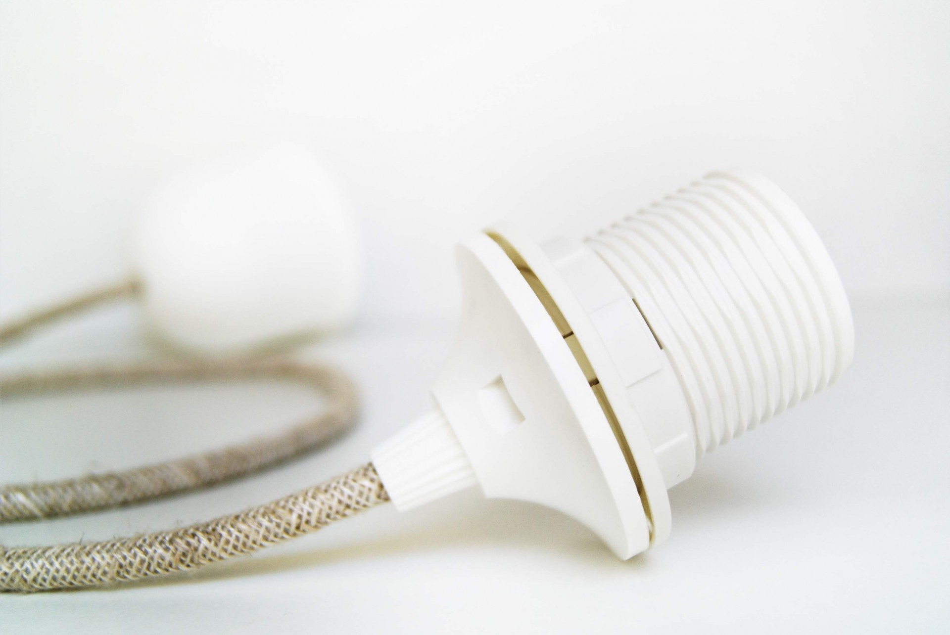 Conjunto elétrico de cabo têxtil cor de areia para candeeiros de suspensão.