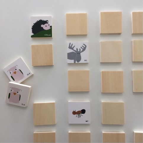 Jogo de memória em madeira com 20 peças, tema - animais da floresta. Também disponível numa outra versão, com desenhos relacionados com estradas / carros. Um brinquedo simples e bonito que ajuda a estimular a memória e o raciocínio lógico da criança.