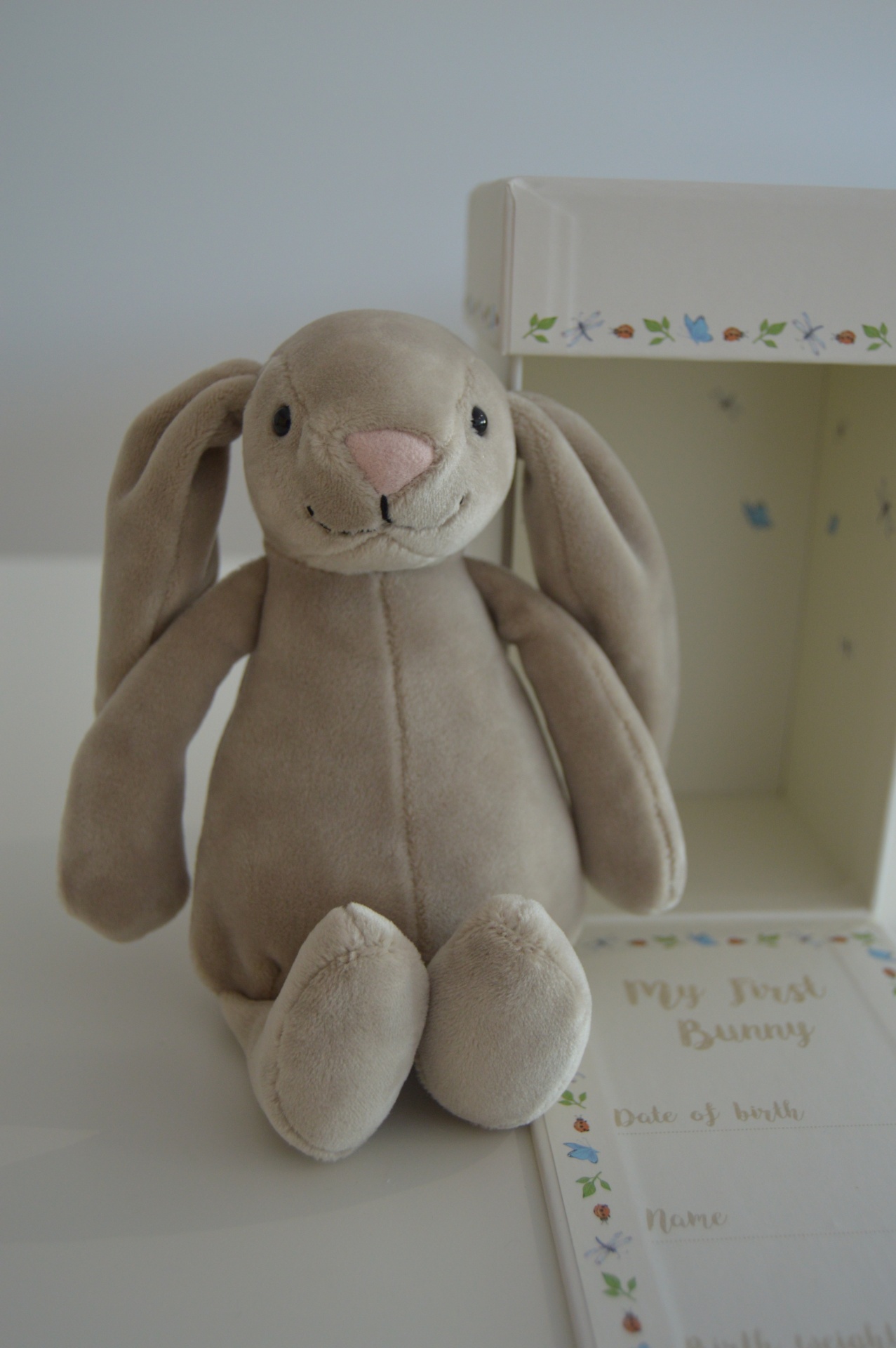 Peluche coelho de pêlo curto e toque aveludado, próprio para acompanhar recém-nascidos. Vem numa bonita caixa-presente onde os pais podem escrever alguns dados do bebé para recordação, como a data e a hora do nascimento. Um miminho especial, ideal para oferecer a uma futura mamã ou na primeira visita ao bebé. A primeira companhia perfeita para bebés recém-nascidos! Mas, aqui entre nós, vai ser companhia durante muito tempo, porque ele é mesmo muito fofo ;)