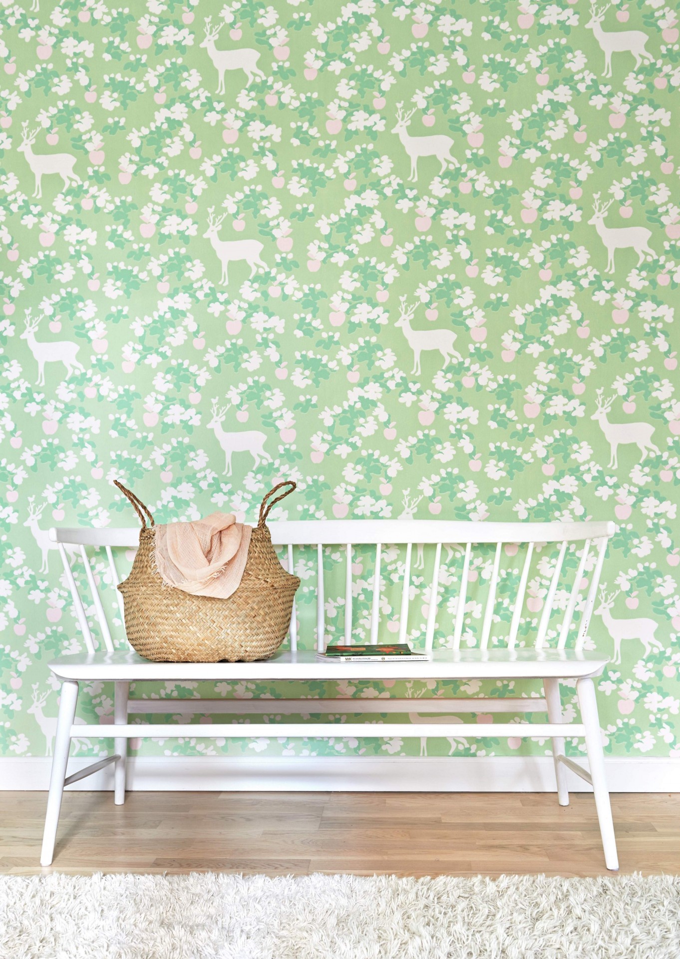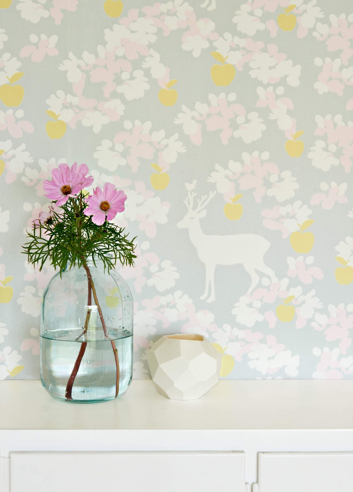 Bonito papel de parede inspirado na natureza e em extensos campos de macieiras. Disponível em três variações de cor.