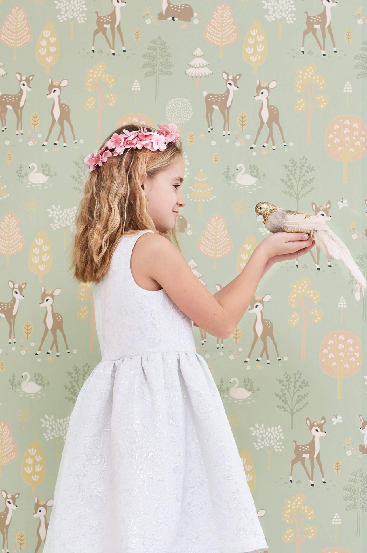 Lindo este papel de parede, com os seus amorosos veados! Disponível em cinco variações de cor.