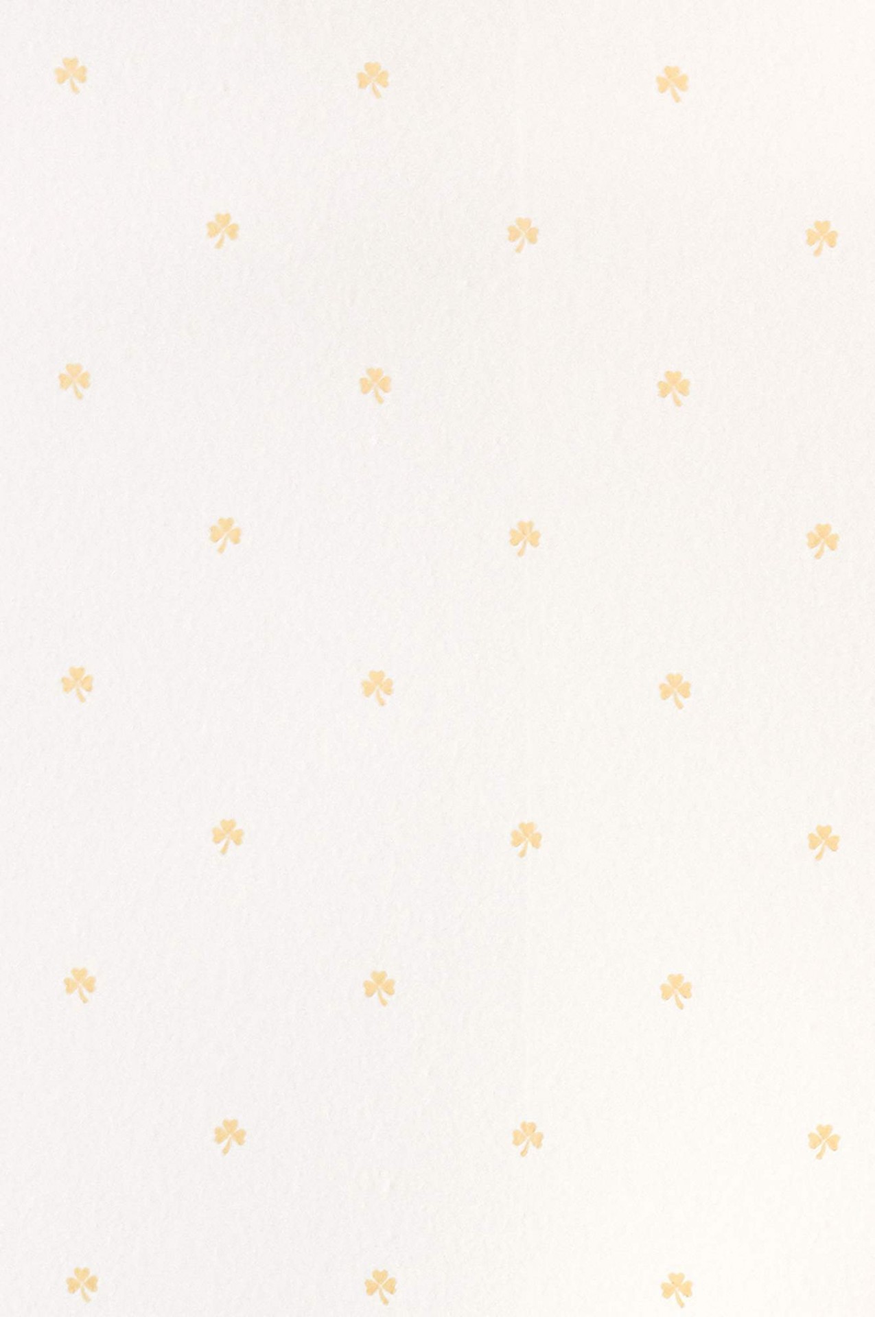 Bonito papel de parede com pequenos trevos dourados em fundo branco. Um design que fica tão bem em quartos de criança como em salas ou quartos de adultos!