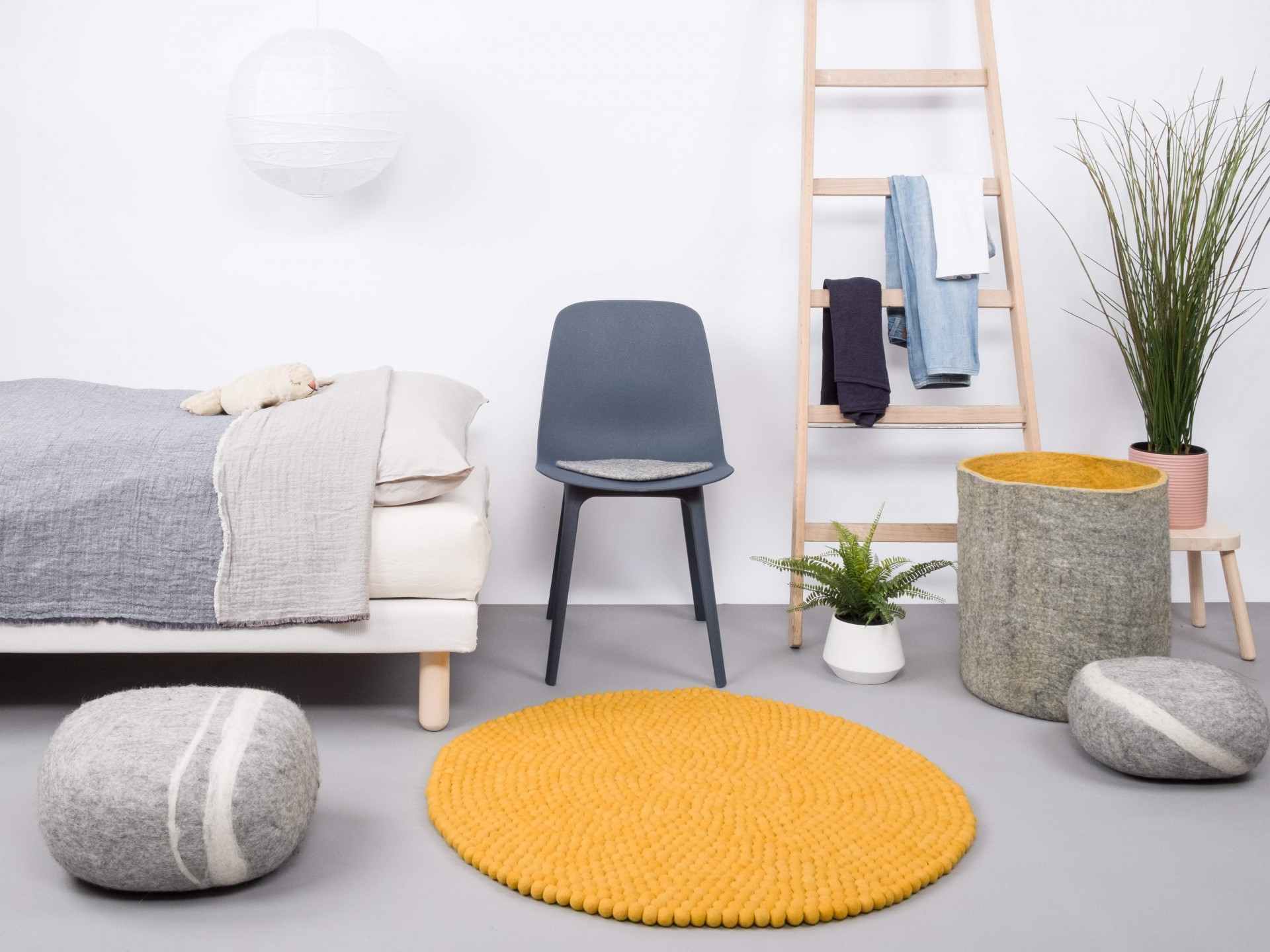 Puff feito à mão com feltro proveniente de lã 100% pura.