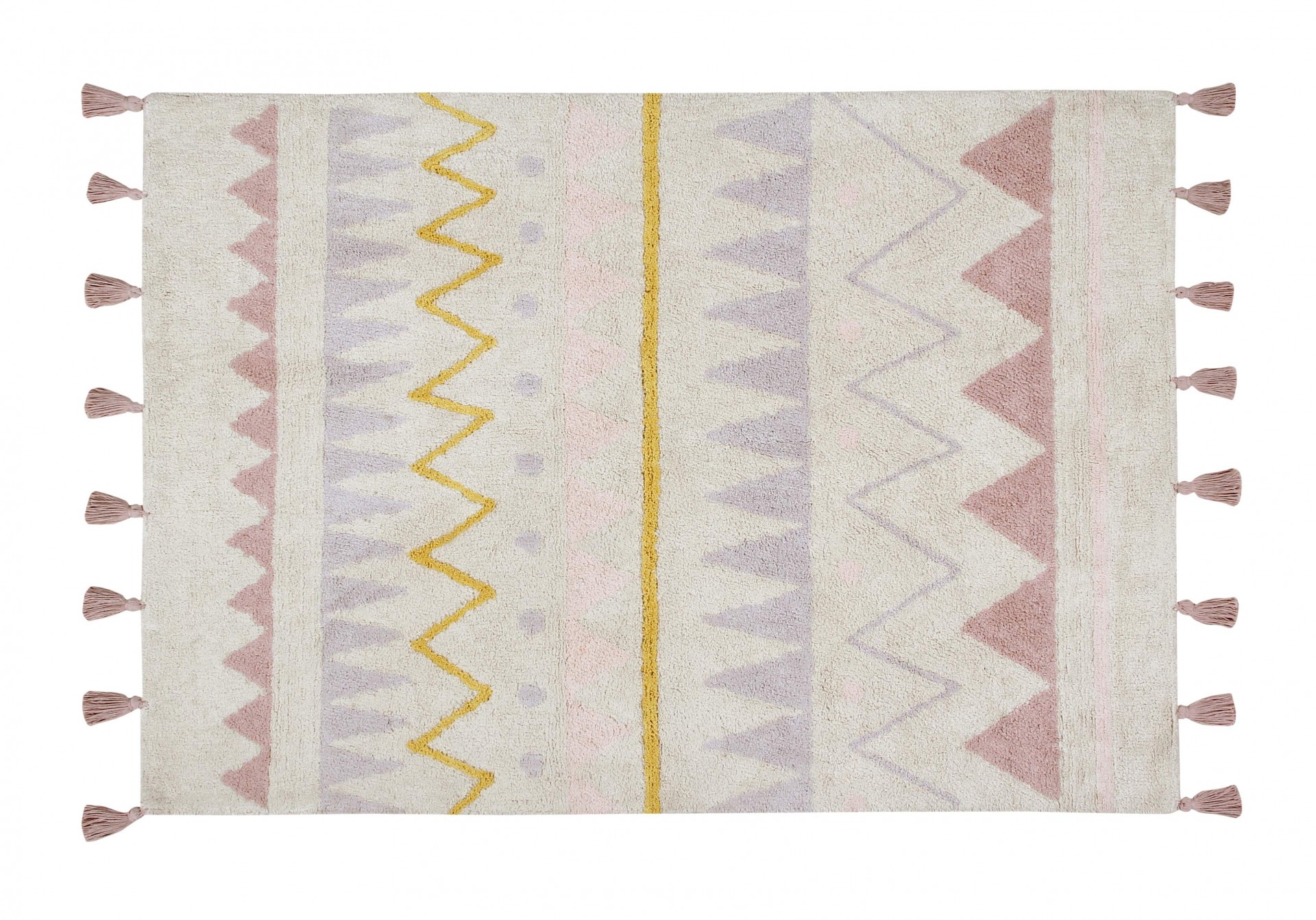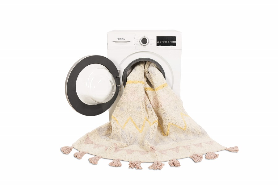 Tapete 100% algodão e lavável numa máquina de lavar convencional (com capacidade para 6 kg). Feito à mão por artesãos e com corantes naturais, é um tapete leve, seguro e eco-friendly!