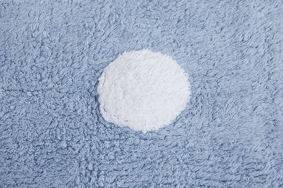 Tapete em 100% algodão, fácil de lavar em casa numa máquina de lavar convencional (com capacidade para 6 kg). É feito à mão e são usados apenas corantes naturais, o que o torna muito seguro e eco-friendly. Por ser de algodão, é leve, macio e flexível.