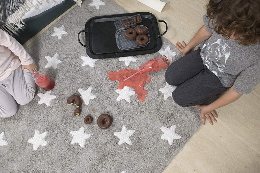 100% algodão, lavável numa máquina de lavar convencional (com capacidade para 6 kg) e feito à mão por artesãos, este tapete adapta-se à decoração do quarto de qualquer criança, sejam meninos ou meninas. Como são utilizados apenas corantes naturais, é muito seguro e, por ser feito de algodão, é leve, macio e flexível.