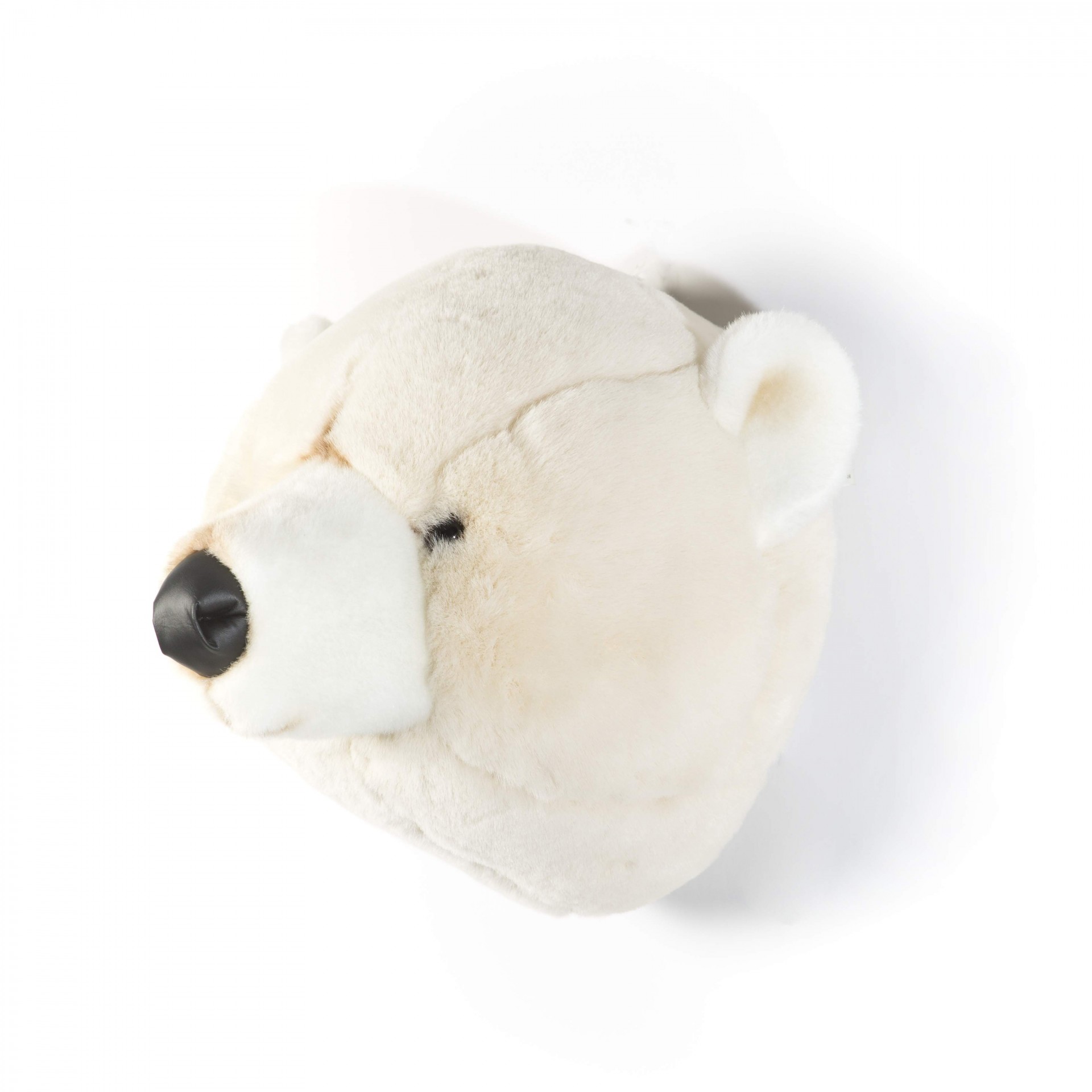 • Cabeça de urso polar de peluche creme e branco com nariz preto